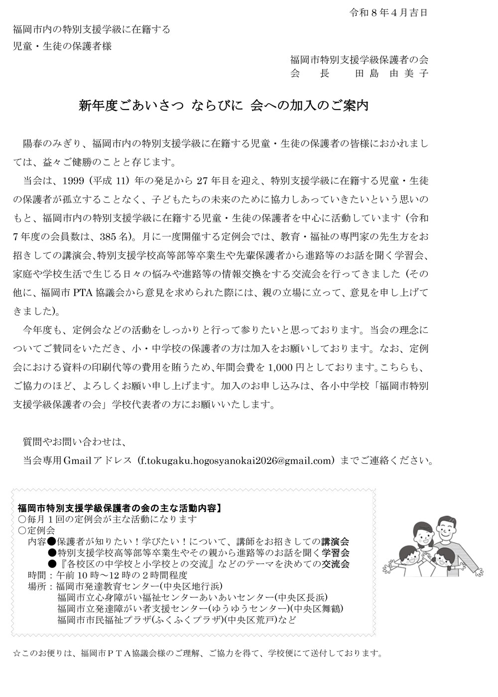 私たちは福岡市内小学校・中学校の特別支援学級に在籍する子どもをもつ保護者の会です。